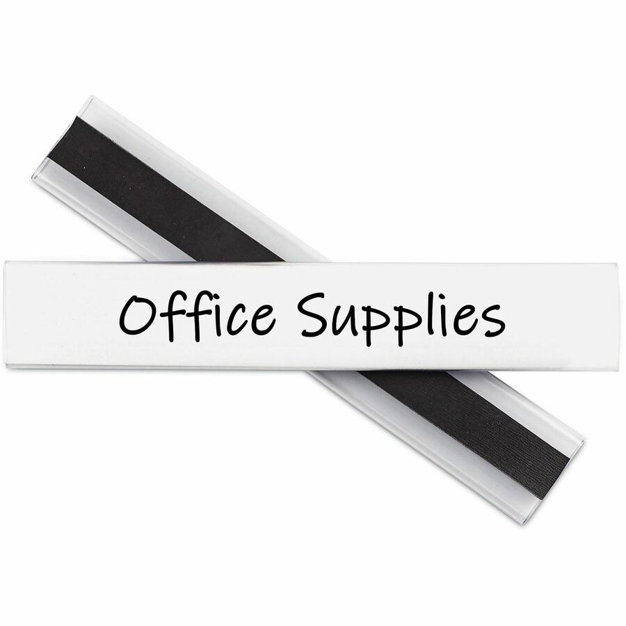 Instantly organize shelving units, racks, magnetic boards and more with the Magnetic Label Holders. Use the tubular-shaped holder to efficiently identify where supplies, files or products are being stored. Sticks to any clean, flat metal surface. Magnetic holders are easy to apply, reposition or remove. Hand write or use a label maker to customize included cardstock inserts. Relabeling is simple, just slide in new white paper insert. Each pack includes ten pockets and ten blank inserts.